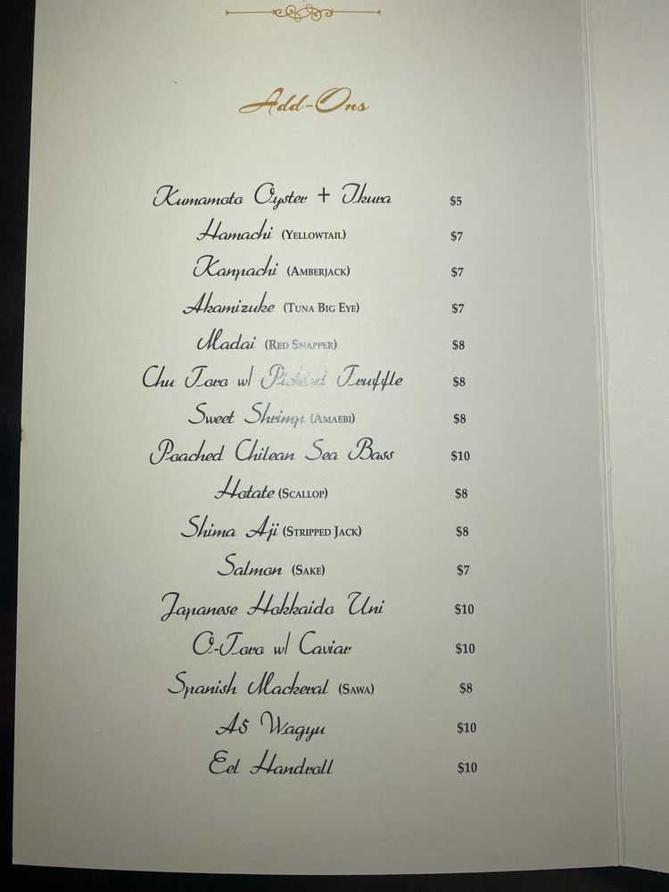 6 slices of seared yellowtail sashimi topped with pickled jalapeo peppers and yuzu sauce.