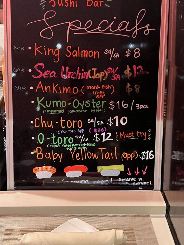 15 pieces of sashimi served with choice of California roll or spicy tuna roll tuna, salmon, yellowtail, white tuna, and omakase